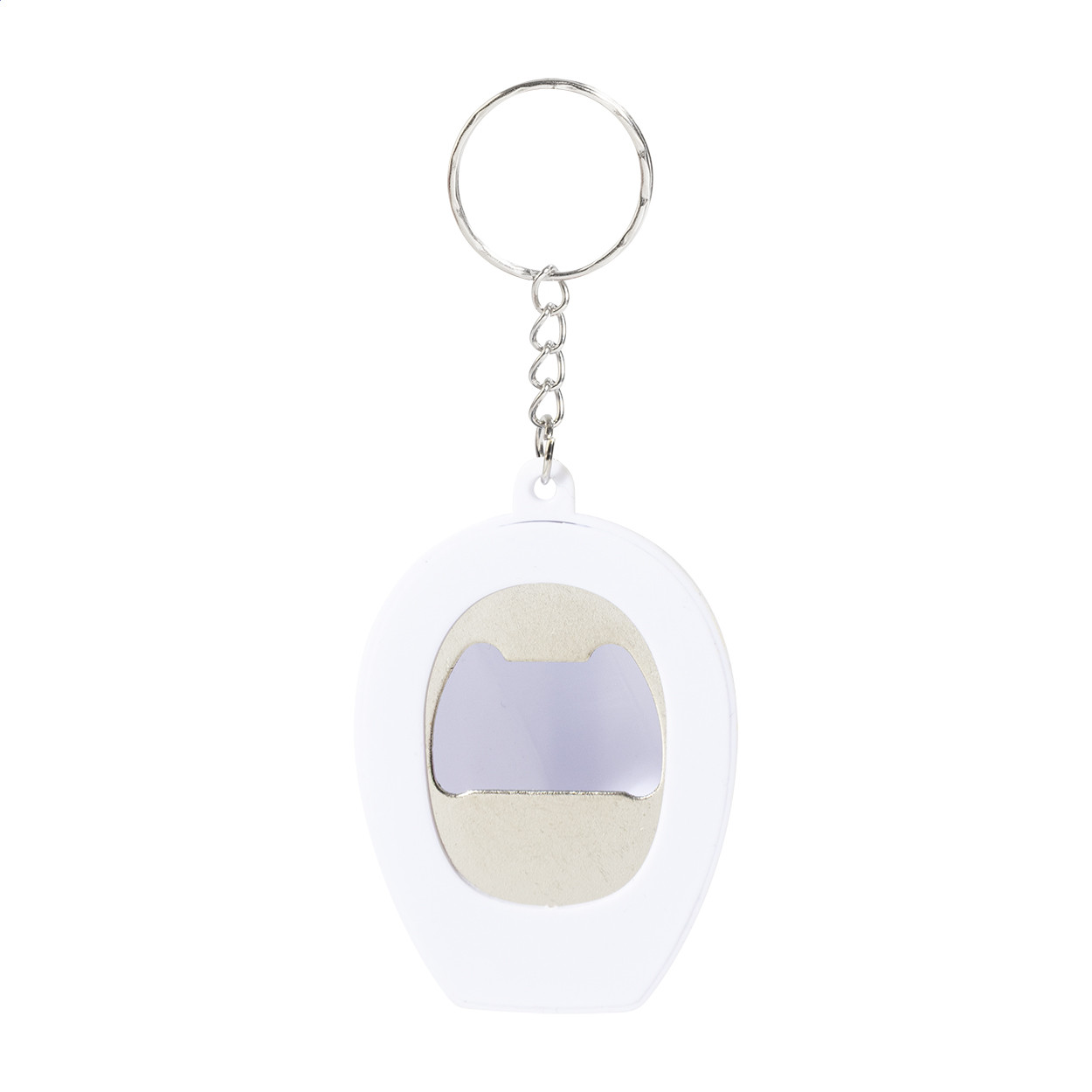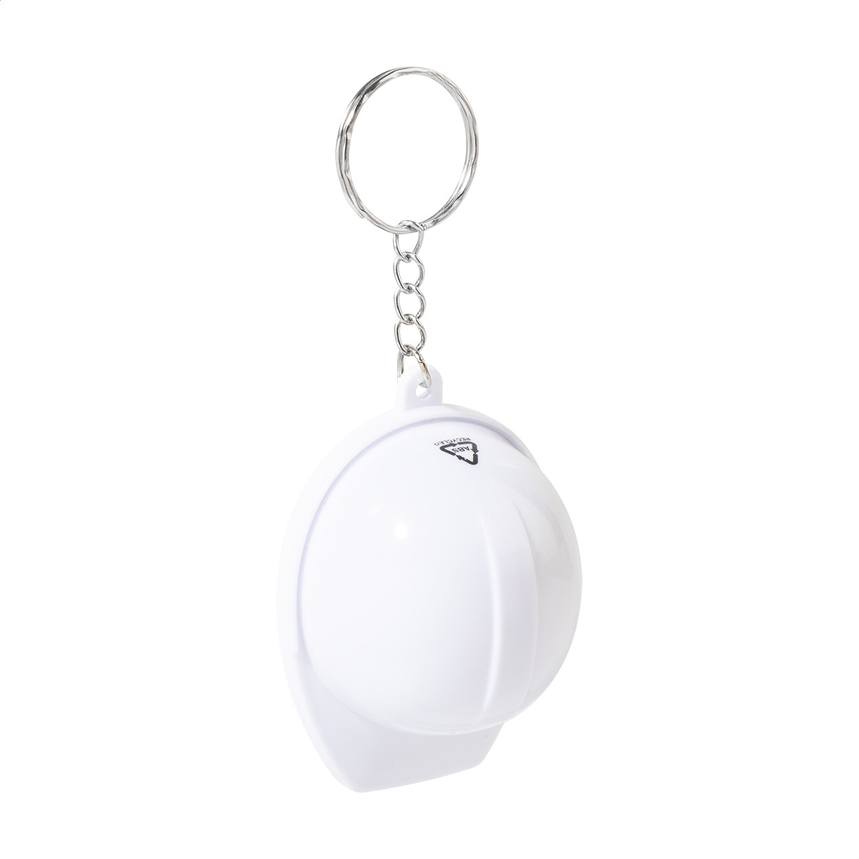 Újrahasznosított ABS műanyagból készült, sisak alakú kulcstartó üvegnyitóval. Jobb oldal