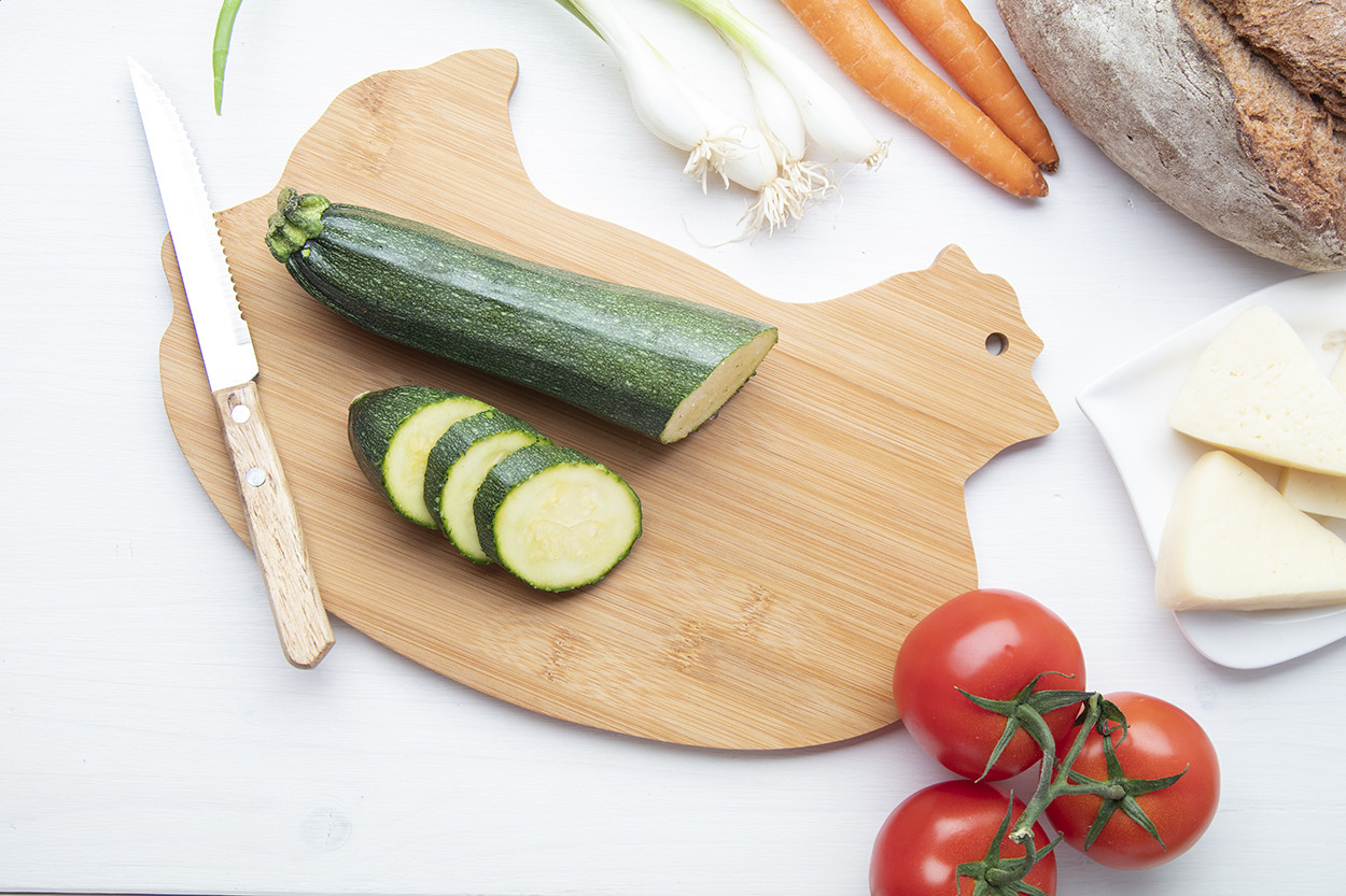 Csirke alakú bambusz vágódeszka. Eleje