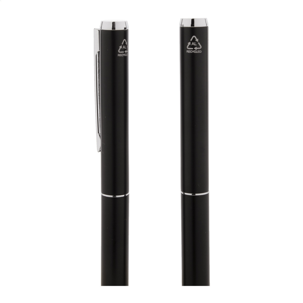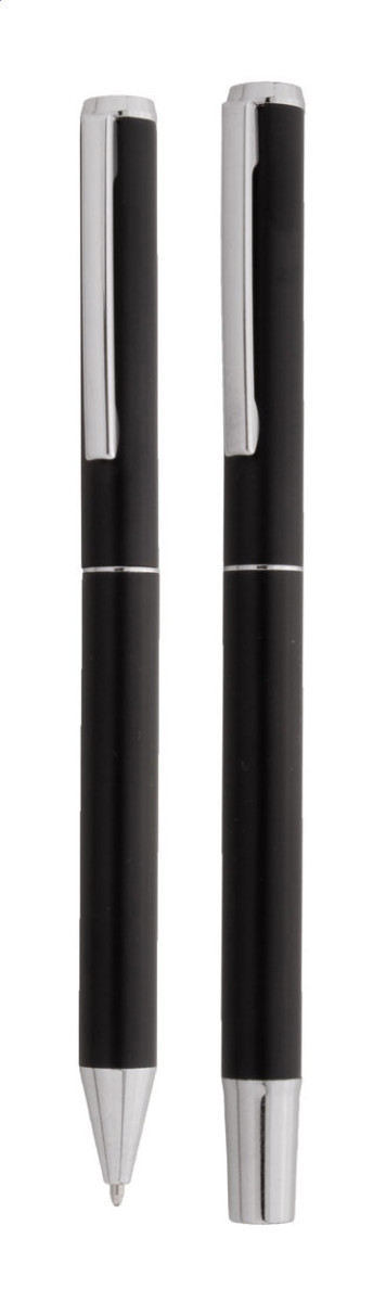 Újrahasznosított alumínium toll szett, golyóstollal és roller tollal. Fekete ajándékdobozban, kék tollbetéttel szállítjuk.