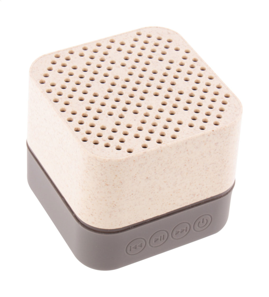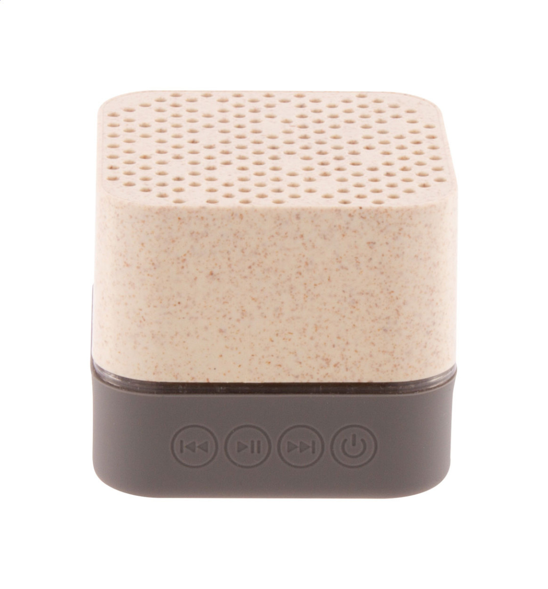 Vezeték nélküli hangszóró környezetbarát búzaszalma műanyag borítással, gumis alsó résszel, többszínű LED világítással és beépített újratölthető akkumulátorral. Micro SD lejátszóval és kihangosító funkcióval. USB töltőkábellel szállítjuk. Eleje