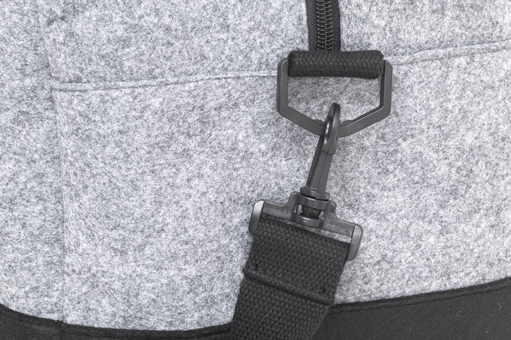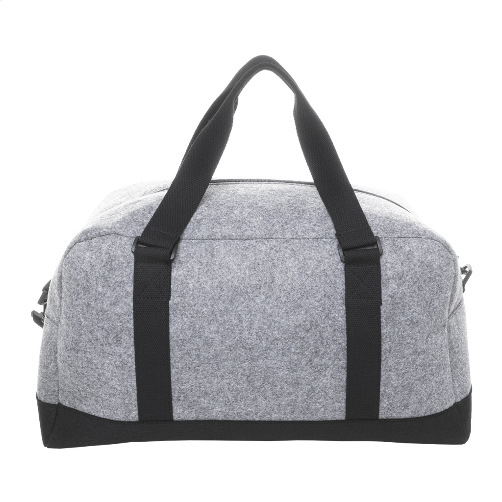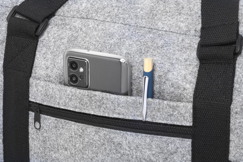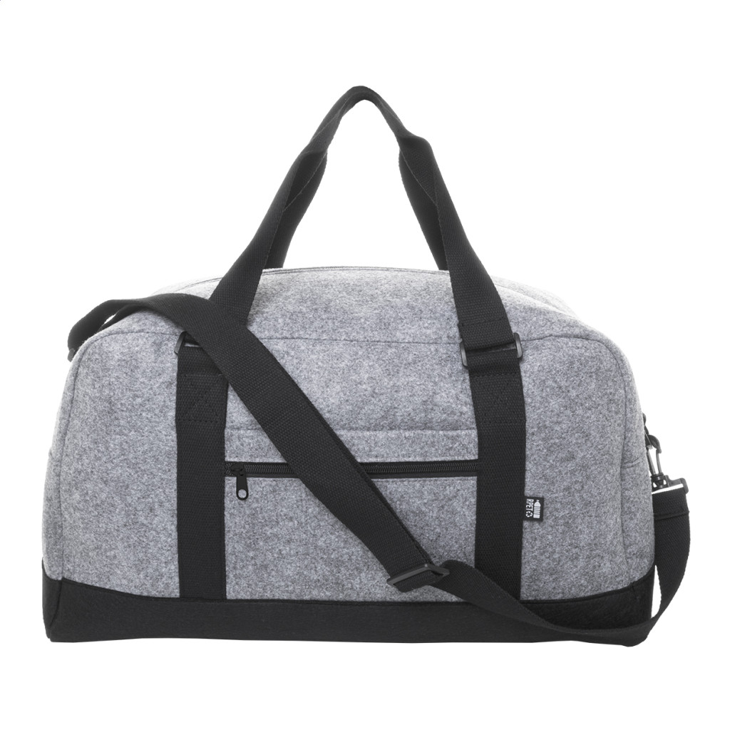 Kéttónusú RPET filc sporttáska cipzáras fő rekesszel, cipzáras első zsebbel és állítható vállpánttal. Megkülönböztető RPET címkével. Zseb