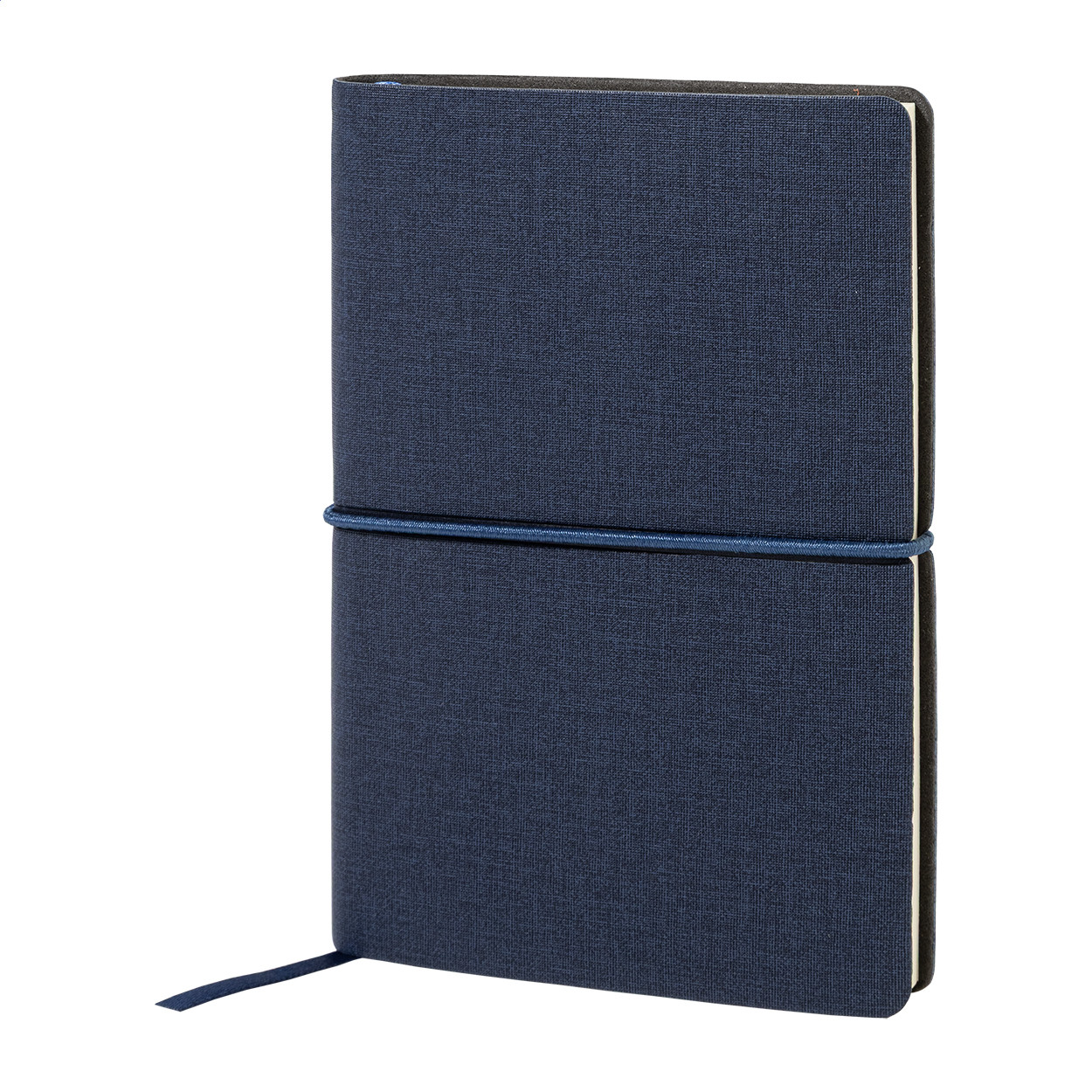 Újrahasznosított PU műbőrrel borított jegyzetfüzet 70 vonalas lappal, 25 öntapadós jegyzetlappal és 125 oldaljelölővel (5 különböző színben). Könyvjelzővel és vízszintes gumipánttal. A6-os méret. Eleje - teteje