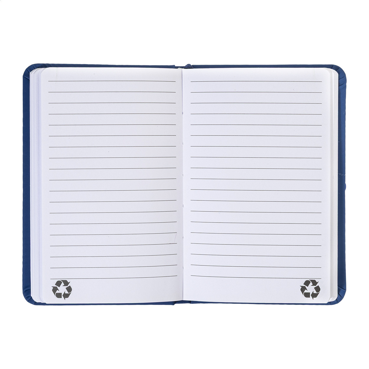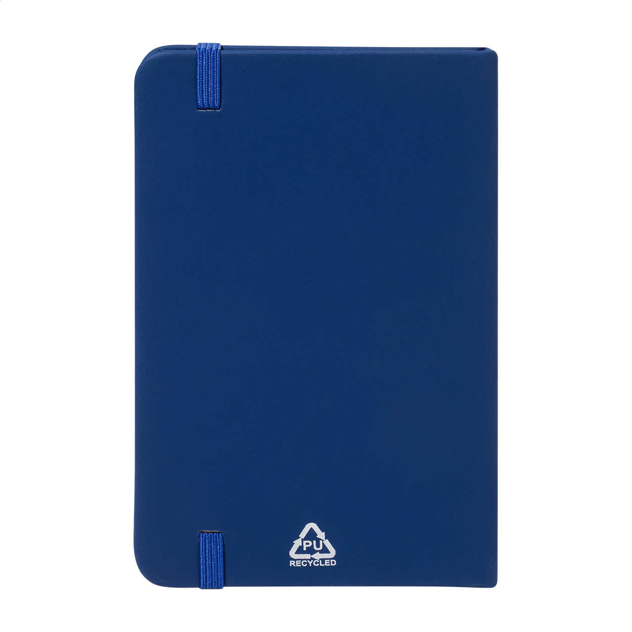 Újrahasznosított PU bőr borítású jegyzetfüzet 100 vonalas lappal, újrahasznosított papírból. Megegyező színű könyvjelzővel és gumiszalaggal. A6 méretű. Eleje