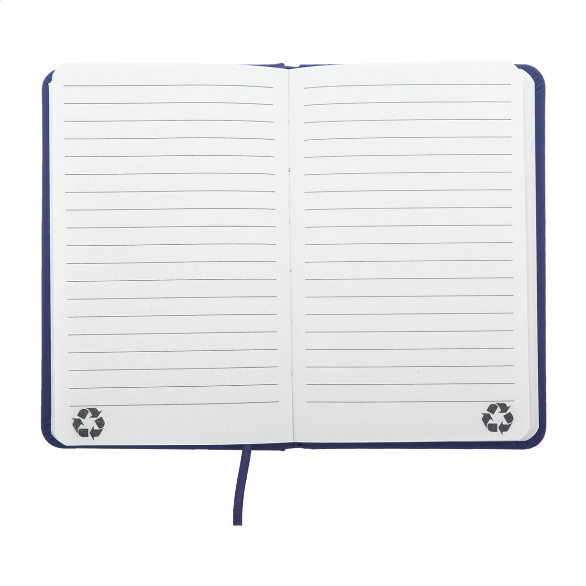 Újrahasznosított PU bőr borítású jegyzetfüzet 100 vonalas lappal, újrahasznosított papírból. Megegyező színű könyvjelzővel és gumiszalaggal. A6 méretű. Eleje