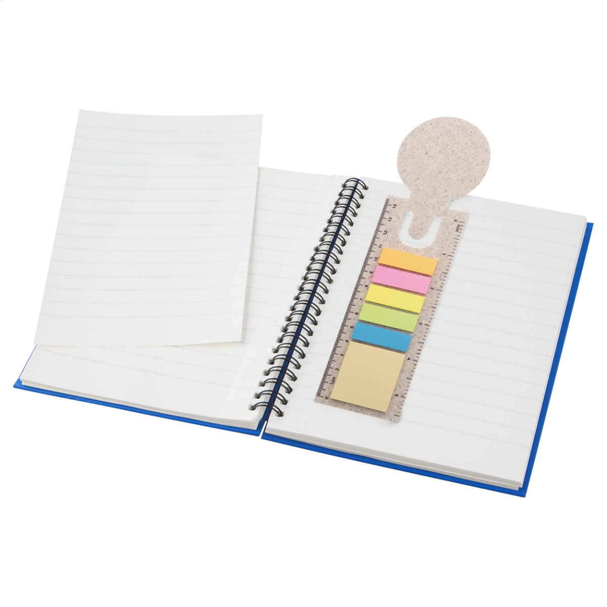 Ökológiai búzaszalma műanyag könyvjelző és vonalzó 25 öntapadós jegyzetlappal és 125 oldaljelölővel (5 féle színben). Teteje