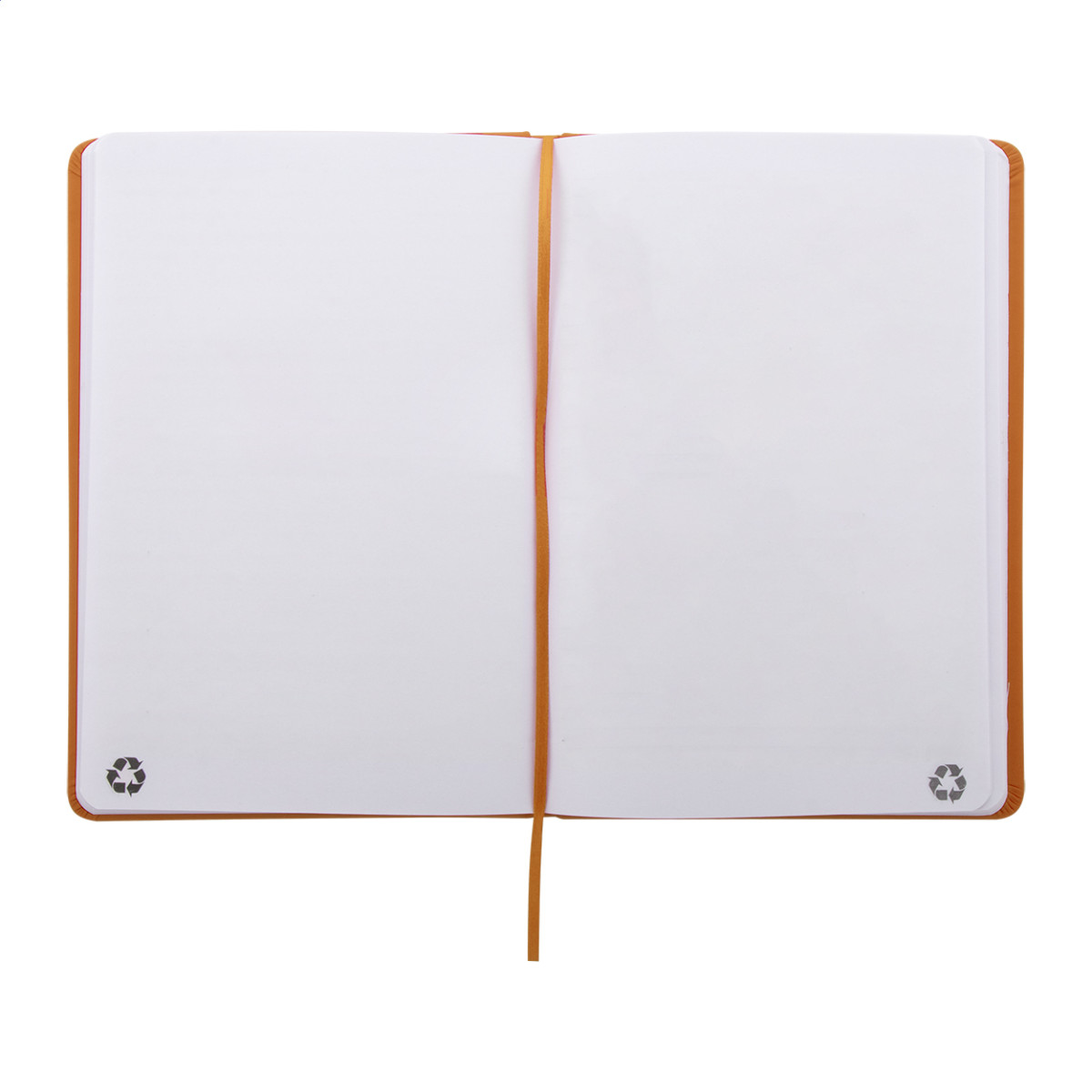 Úrahasznosított PU bőr borítású jegyzetfüzet újrahasznosított papírból készült 100 sima lappal. Hozzáillő színű gumipánttal és könyvjelzővel. A5 méretű. Eleje