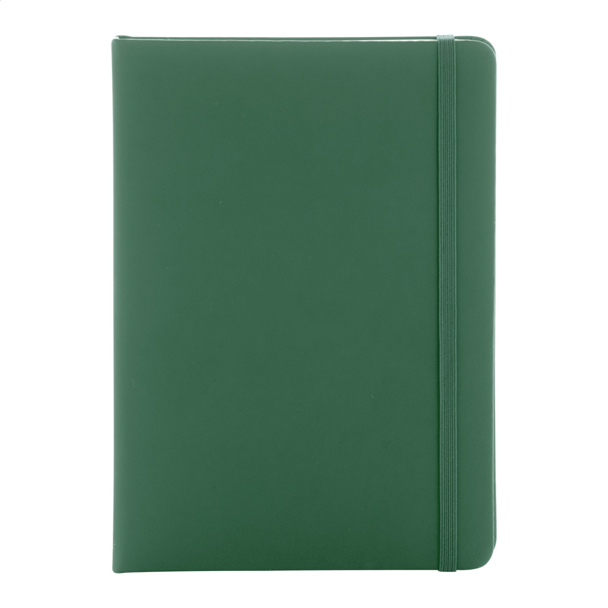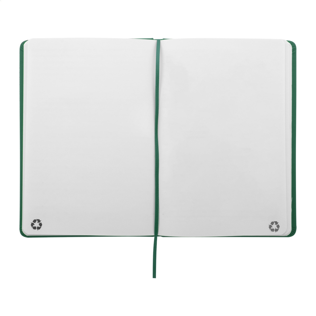 Úrahasznosított PU bőr borítású jegyzetfüzet újrahasznosított papírból készült 100 sima lappal. Hozzáillő színű gumipánttal és könyvjelzővel. A5 méretű. Eleje