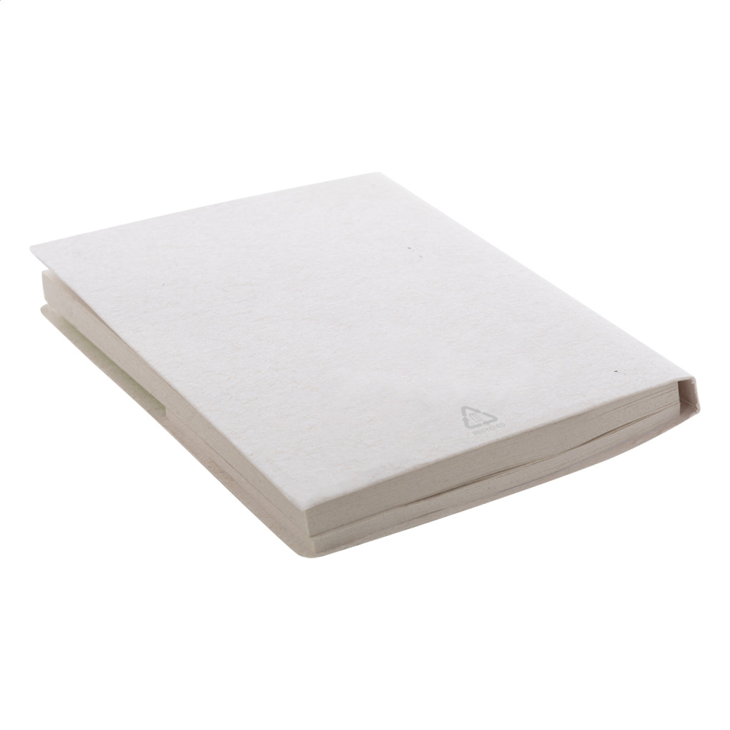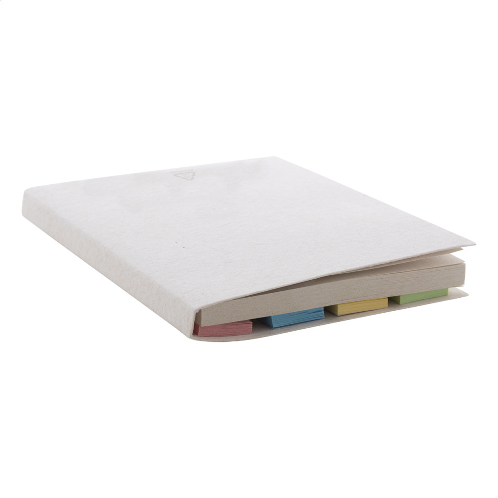 Újrahasznosított tejesdoboz öntapadós jegyzettömb 50 nagy és 25 közepes méretű jegyzetlappal és 100 oldaljelölővel (4 különböző színben). Eleje