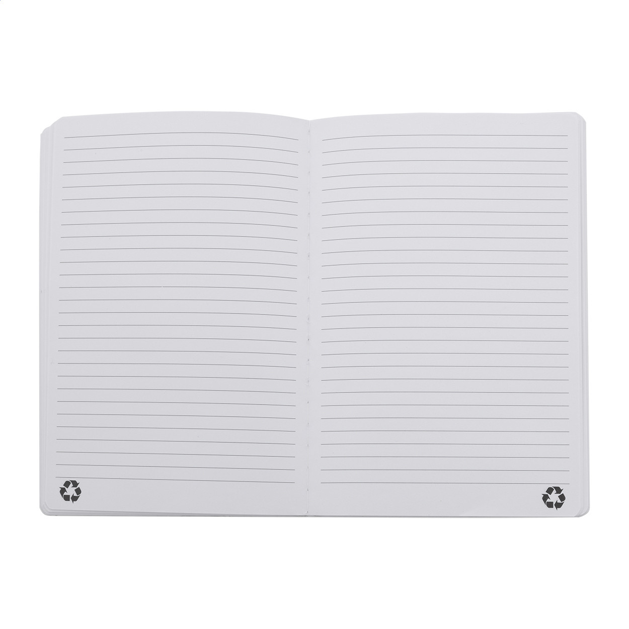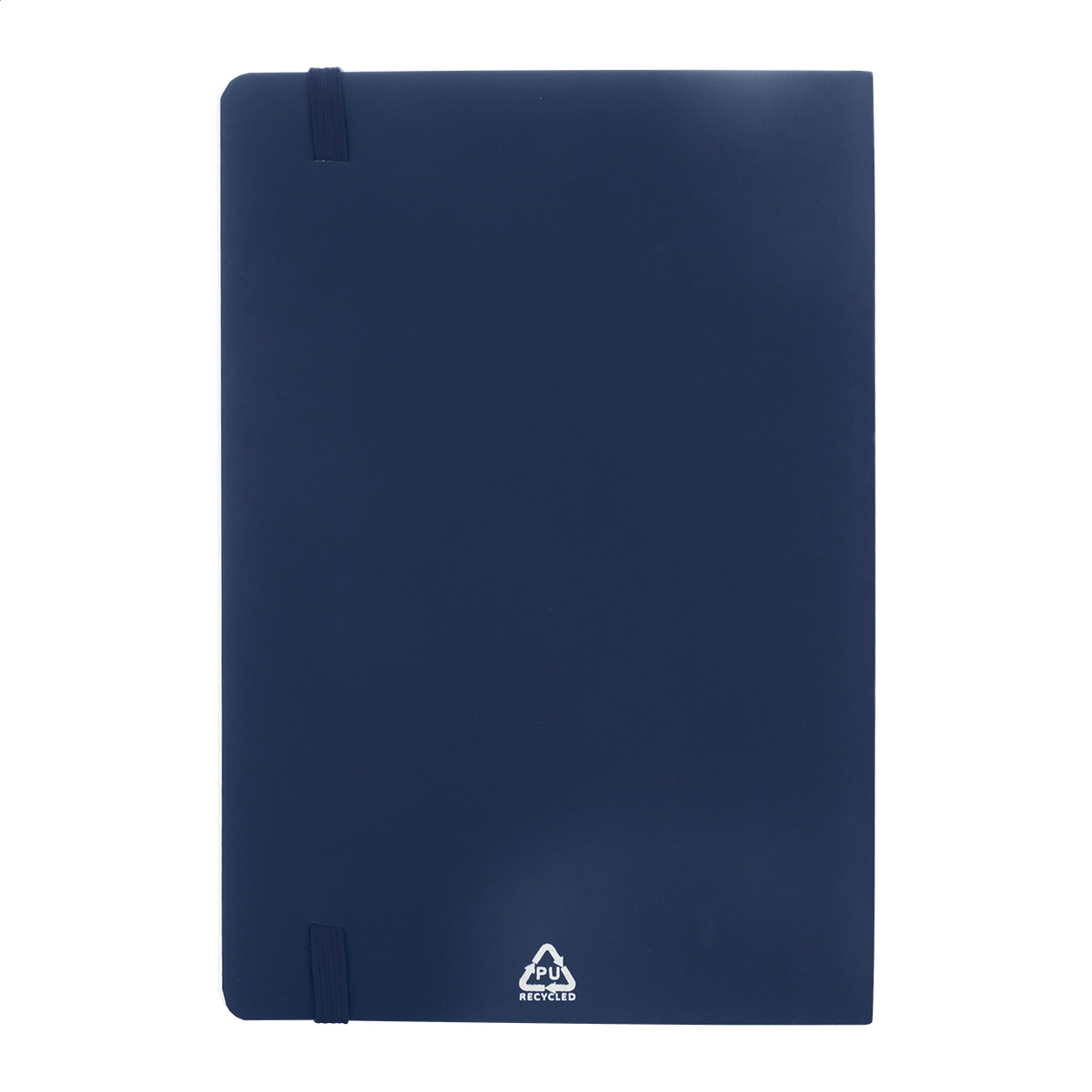 Újrahasznosított PU bőr, puha fedelű jegyzetfüzet 80 vonalas lappal, újrahasznosított papírból. Hozzáillő színű könyvjelzővel és gumiszalaggal. A5 méretű. Eleje