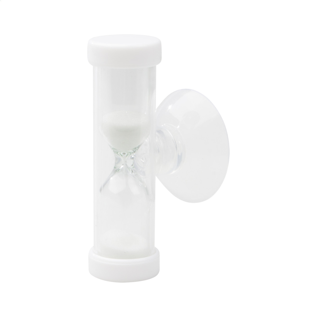 Műanyag, 3 perces homokóra, a tartóval megegyező színű homokkal. Tapadókoronggal rögzíthető. Egyediesítsd digitálisan nyomott papírbetéttel! Homokóra