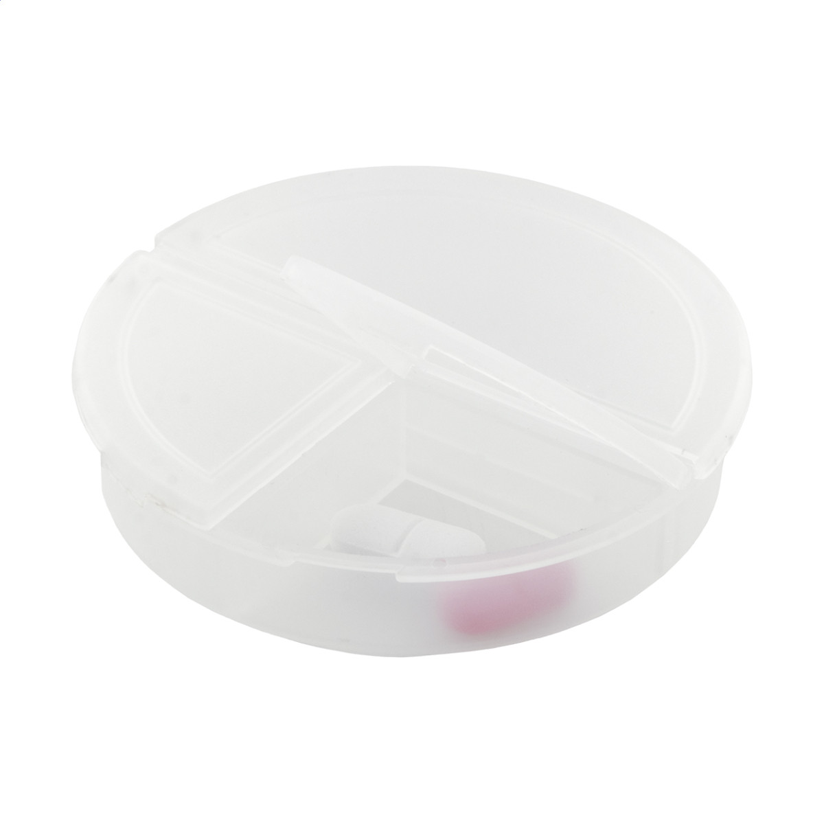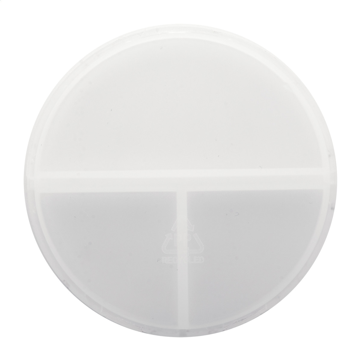 Újrahasznosított PP műanyag három rekeszes, műanyag gyógyszeradagoló. Teteje - felső rész