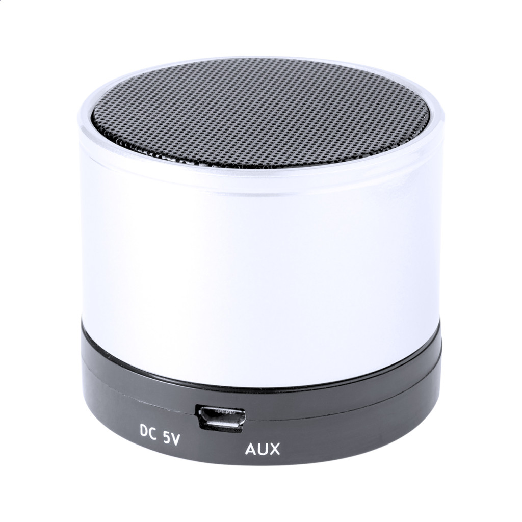 Vezeték nélküli hangszóró újrahasznosított alumínium borítással. Rádióval, MP3 lejátszóval, kihangosító funkcióval és beépített újratölthető akkumulátorral (300 mAh). USB töltővel és aux-in kábellel. Eleje