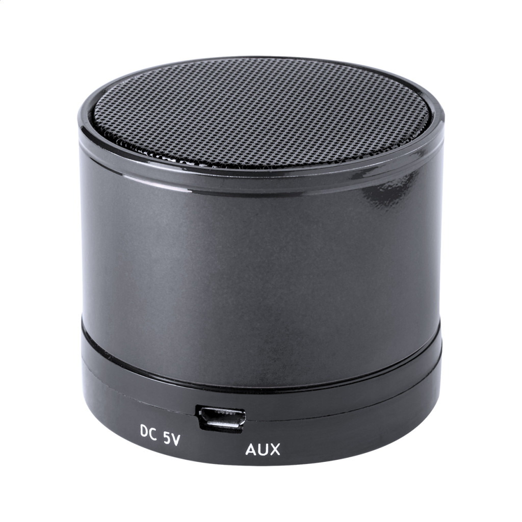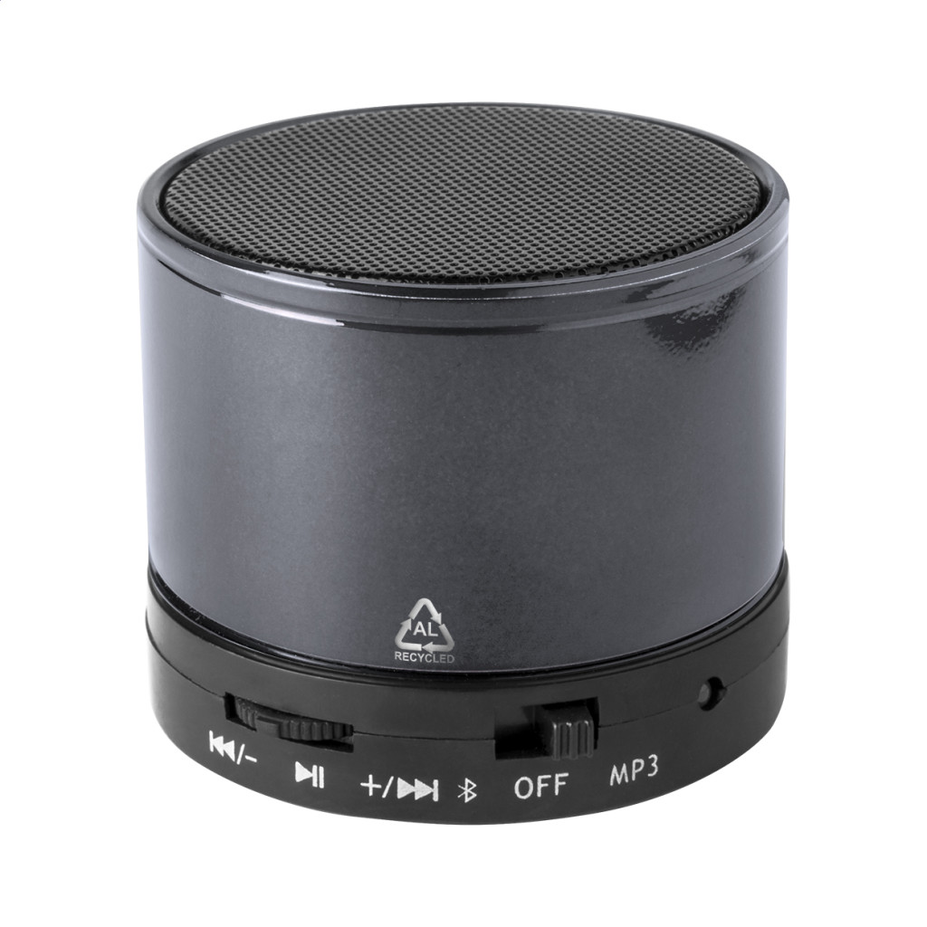 Vezeték nélküli hangszóró újrahasznosított alumínium borítással. Rádióval, MP3 lejátszóval, kihangosító funkcióval és beépített újratölthető akkumulátorral (300 mAh). USB töltővel és aux-in kábellel. Eleje