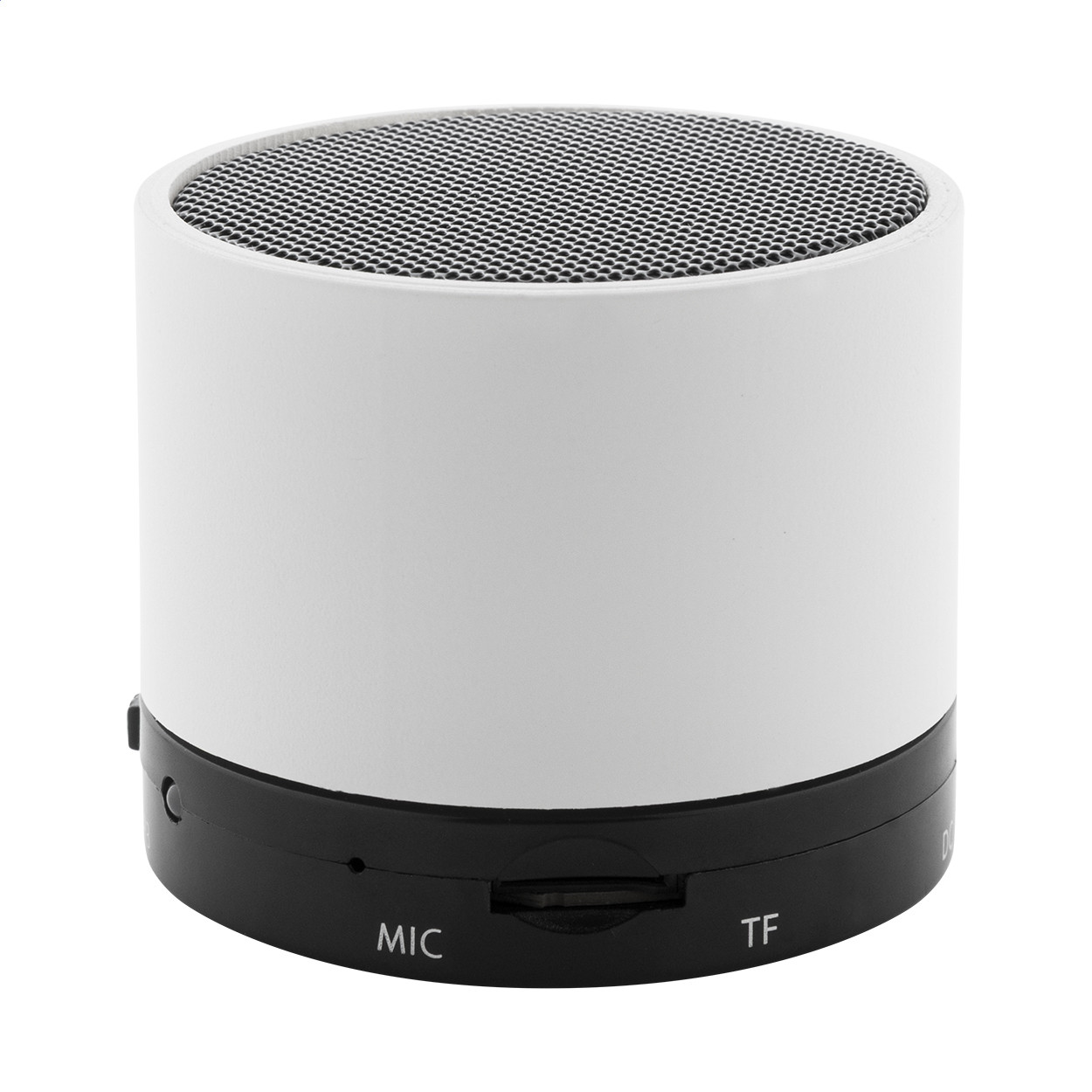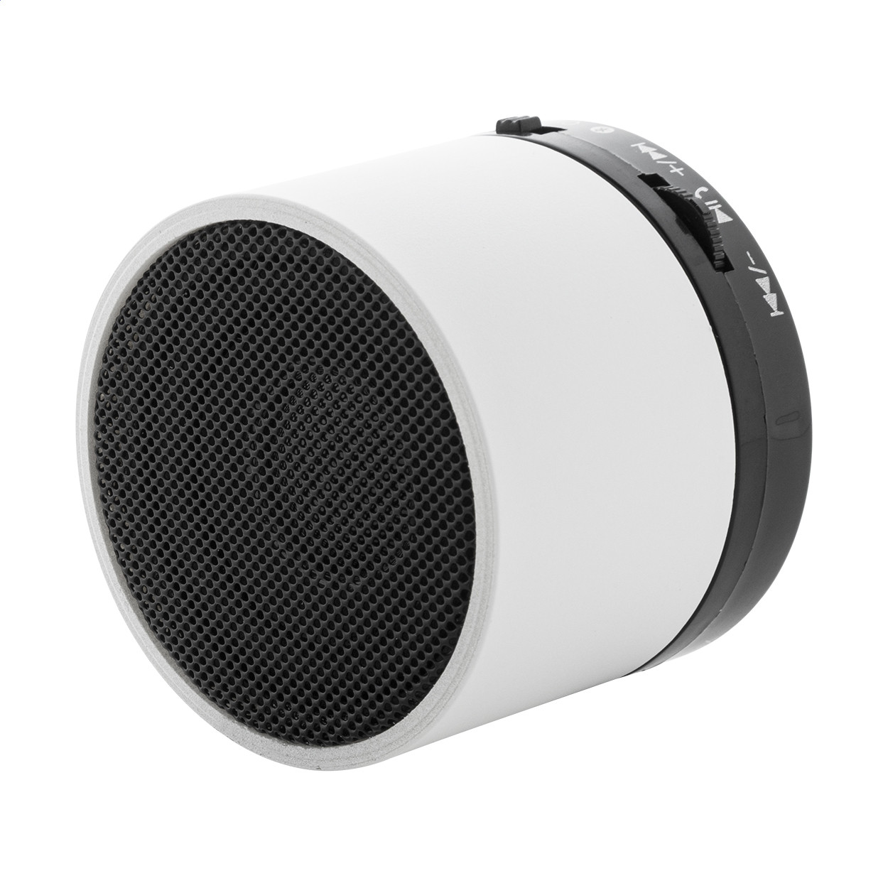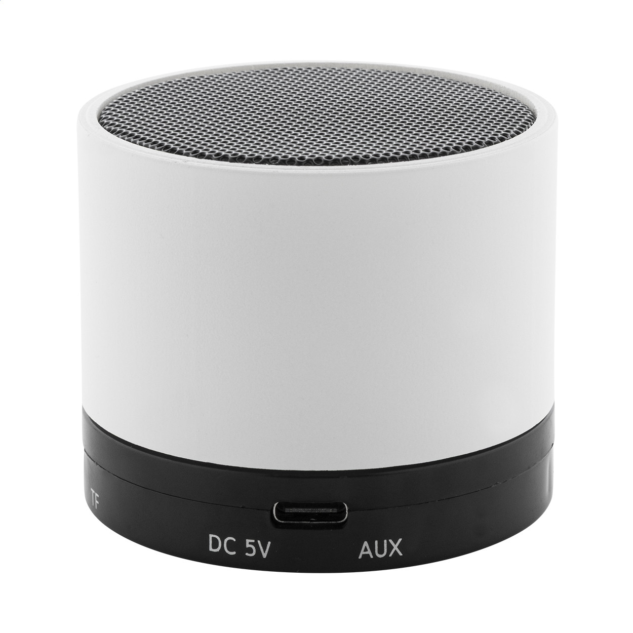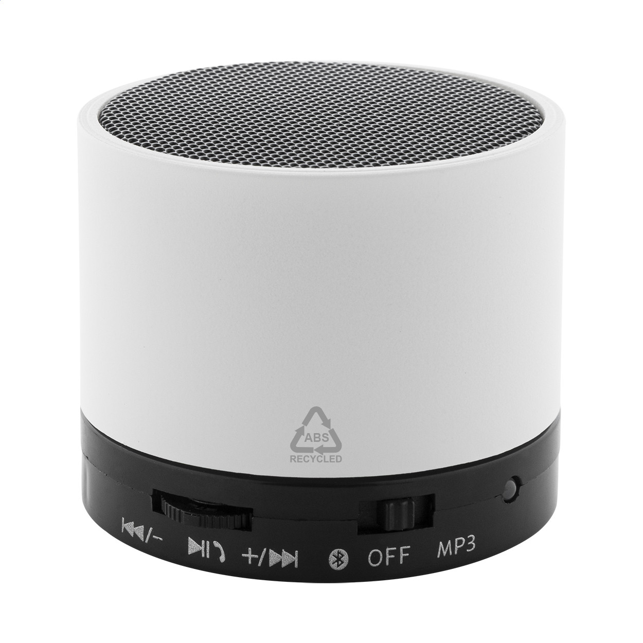 Újrahasznosított ABS műanyag vezeték nélküli hangszóró gumírozott borítással, fém hálóval és újratölthető akkumulátorral (300 mAh). Kihangosító és micro SD MP3 lejátszási funkciókkal. USB töltőkábellel. Eleje