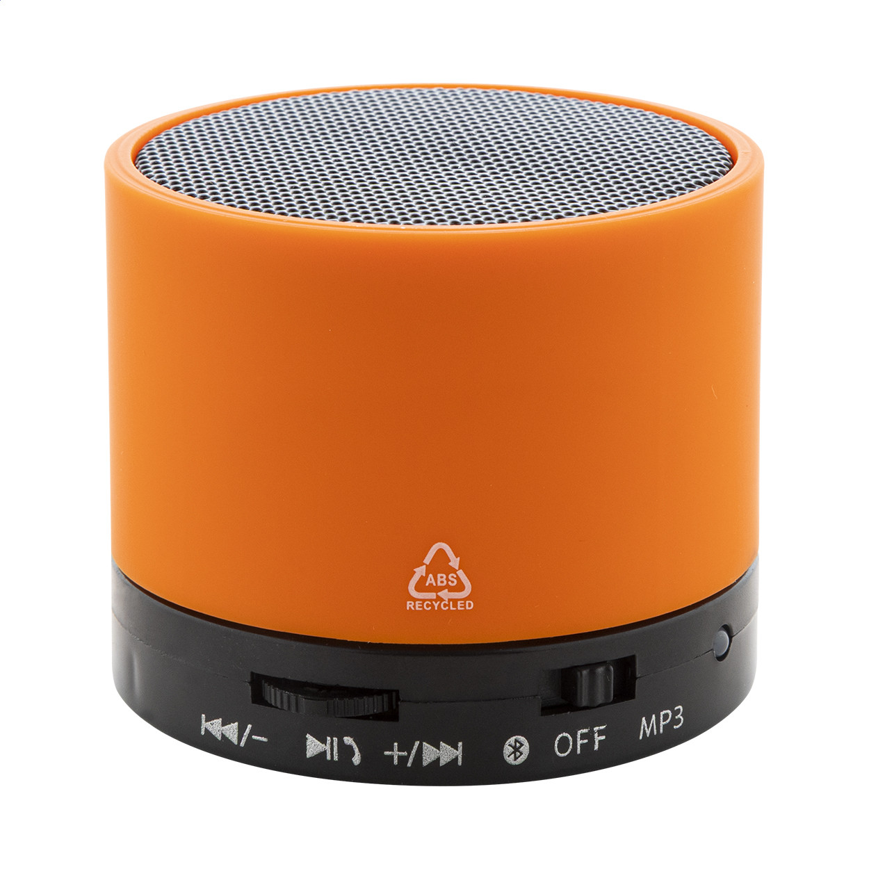 Újrahasznosított ABS műanyag vezeték nélküli hangszóró gumírozott borítással, fém hálóval és újratölthető akkumulátorral (300 mAh). Kihangosító és micro SD MP3 lejátszási funkciókkal. USB töltőkábellel. Eleje