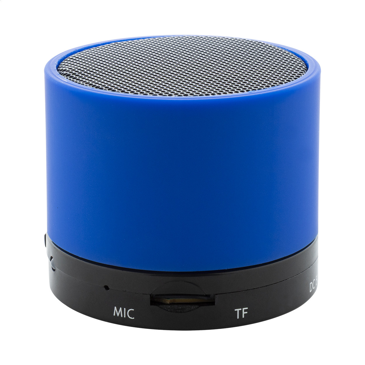 Újrahasznosított ABS műanyag vezeték nélküli hangszóró gumírozott borítással, fém hálóval és újratölthető akkumulátorral (300 mAh). Kihangosító és micro SD MP3 lejátszási funkciókkal. USB töltőkábellel. Eleje