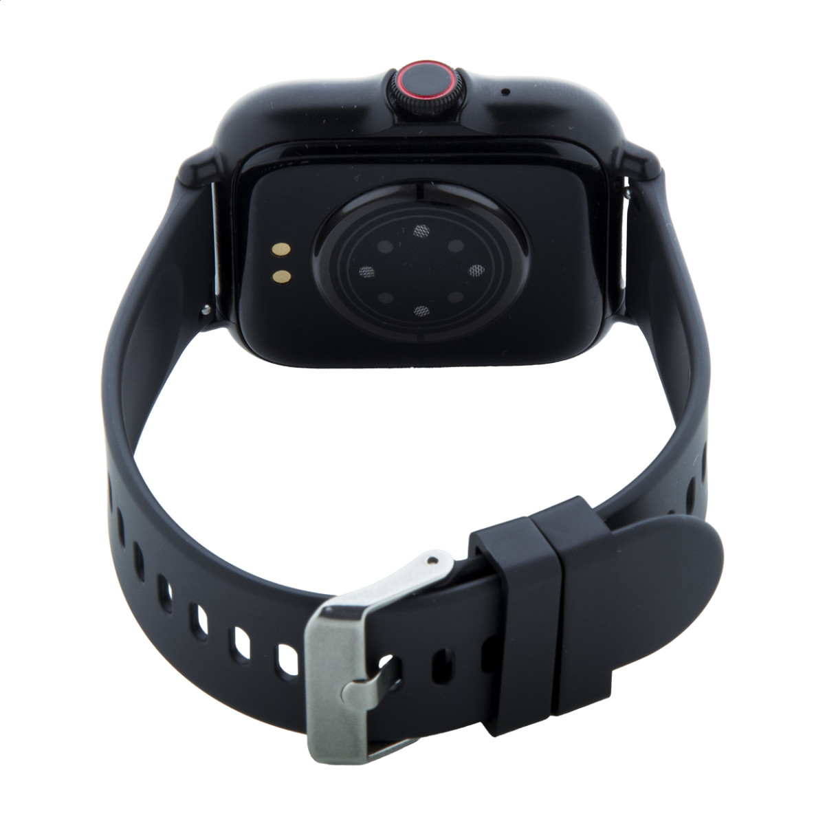Többfunkciós vezeték nélküli okosóra fém házban, 1,44" TFT érintőképernyővel, 150 mAh újratölthető akkumulátorral és szilikon szíjjal. Számos egészségfigyelő és intelligens funkcióval rendelkezik, többek között pulzusszám-, vérnyomás- és oxigénszintmérő. Csatlakoztatható okostelefonokhoz egy ingyenes iOS és Android alkalmazással. USB töltőkábellel szállítjuk. IP65 vízálló. Kijelző alatt