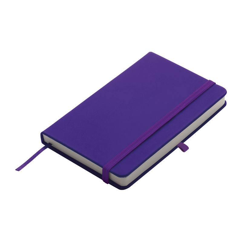 A6 méretű jegyzettömb PU borítással, 190 sima fehér oldallal. Színes gumis pánttal, könyvjelző szalaggal és praktikus tolltartó hurokkal ellátva.
