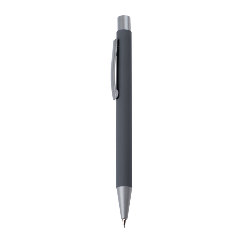 Fémből készült mechanikus ceruza gumírozott borítással és két ceruzabetéttel (0,5 mm).