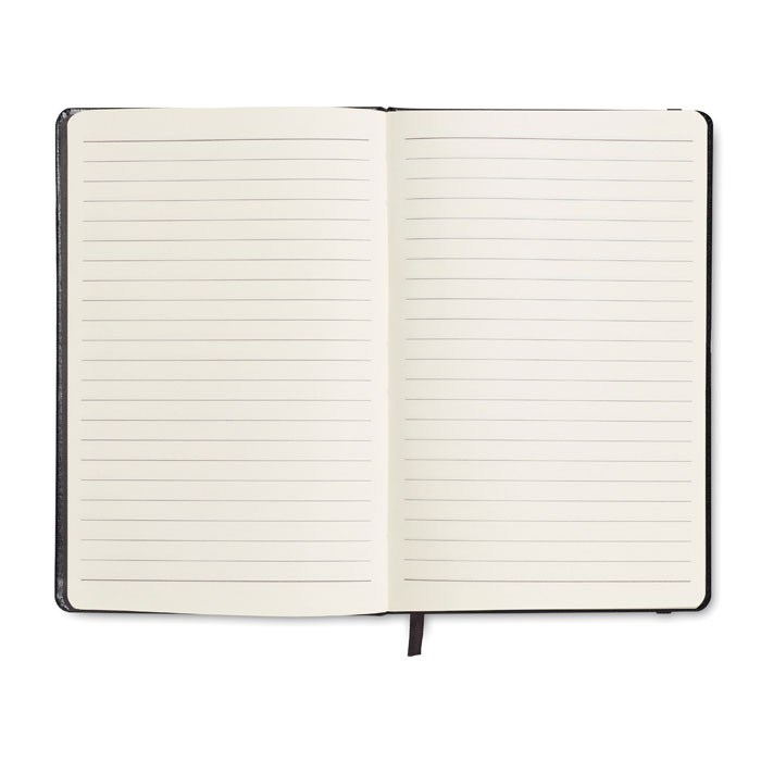 A5 jegyzetfüzet PU keménytáblás borítóval. Cérnafűzött. 192 vonalas oldal (96 lap) újrahasznosított papírból. Színben illeszkedő elasztikus zárópánt és könyvjelző szalag. FSC®-certified | FSC MIX CREDIT, P7.1, FSC-C213206