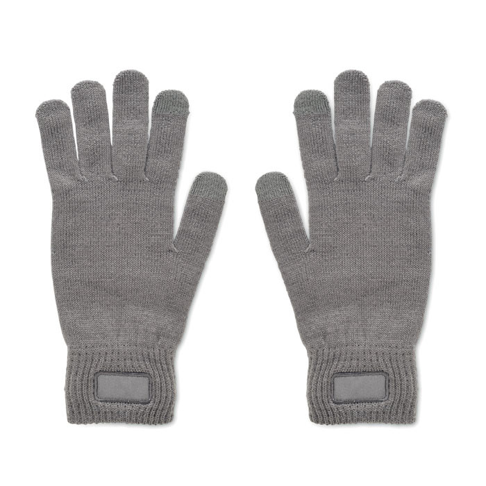 Kötött kesztyű puha, rugalmas RPET poliészterből, felvarróval.