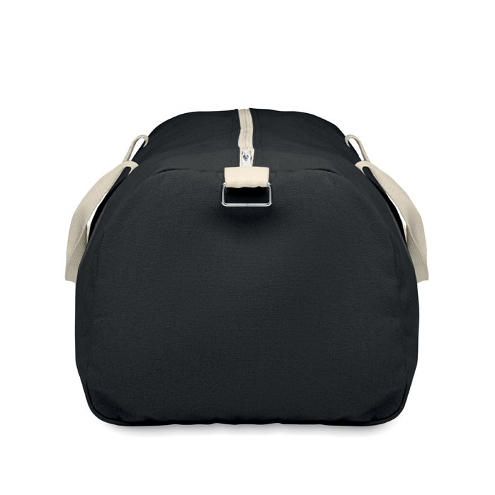 Sporttáska 320 g/m² vastag újrahasznosított anyagból (60% újrahasznosított pamut, 40% újrahasznosított poliészter), pamut fülekkel, állítható és levehető vállpánttal.