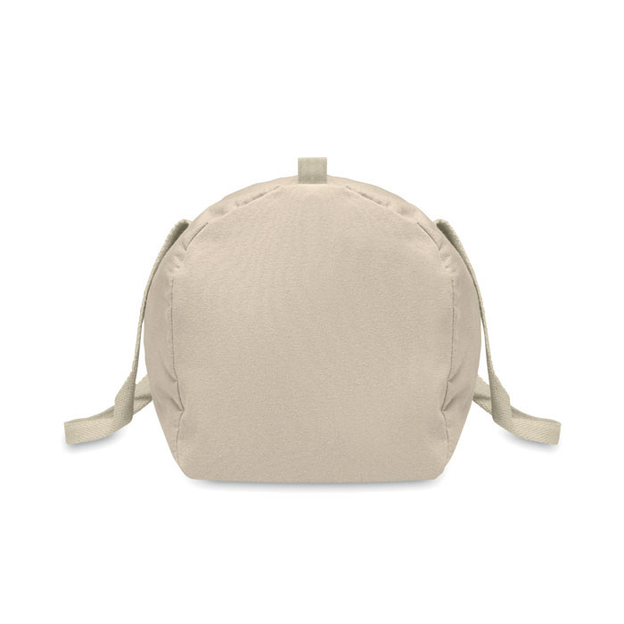 Sport- vagy utazótáska cipzáras oldalsó rekesszel és cipzáras belső zsebbel, 320 g/m² vastag újrahasznosított pamutból (80%) és újrahasznosított poliészterből (20%), hosszú fülekkel.