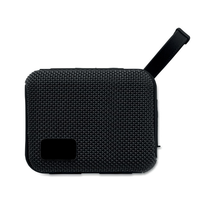 5.0 vezeték nélküli hangszóró ABS-ből, RPET hangfalselyemmel, akasztózsinórral. 1 újratölthető 800 mAh lítium-ion akkumulátorral. SD-kártya porttal és AUX/USB kábellel. Teljesítmény: 5W, 3 Ohm és 5V. Üzemidő kb. 3 óra.