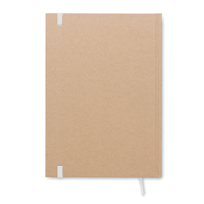 A5 jegyzetfüzet keménytáblás, újrahasznosított kartonborítóval. Cérnafűzött. 200 vonalas oldal (100 lap), 80 g vastag újrahasznosított papírból. Elasztikus zárópánt és könyvjelző szalag. EU-ban gyártva.