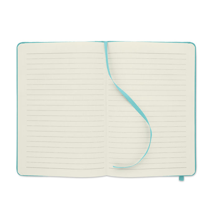 A5 jegyzetfüzet 600D RPET keménytáblás borítóval. Cérnafűzött. 160 vonalas oldal (80 lap) újrahasznosított papírból. Hozzáillő elasztikus zárópánt és könyvjelző szalag. FSC®-certified | FSC MIX CREDIT, P7.1, FSC-C213206
