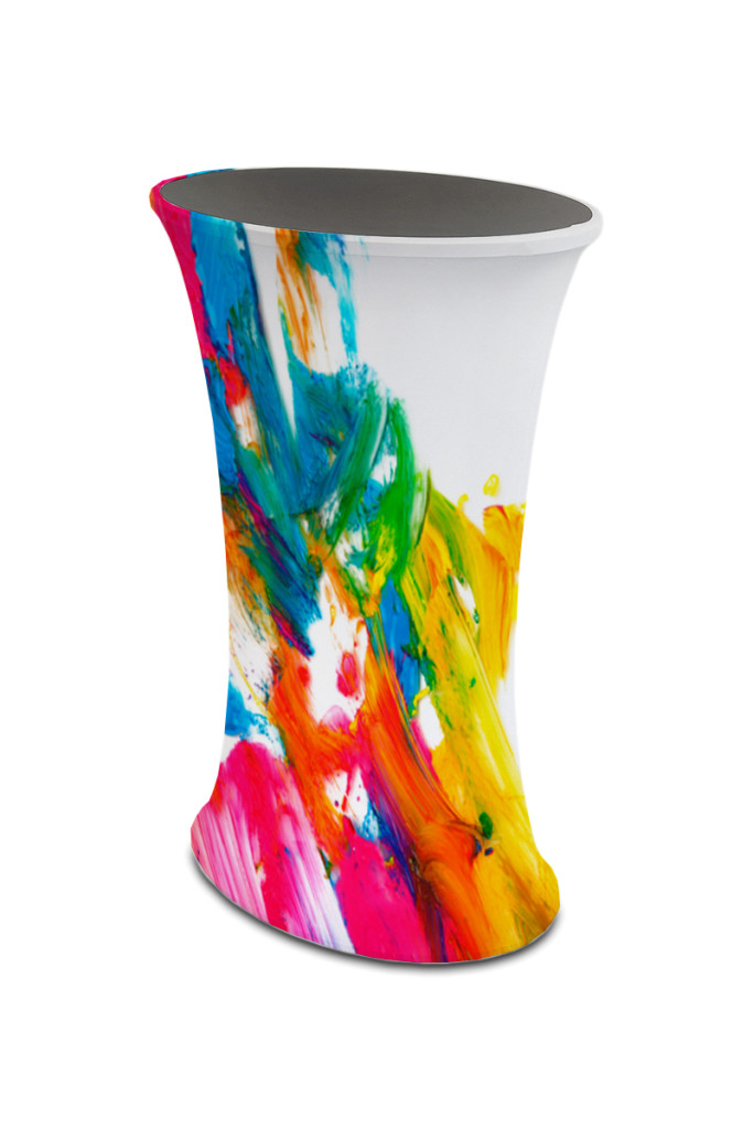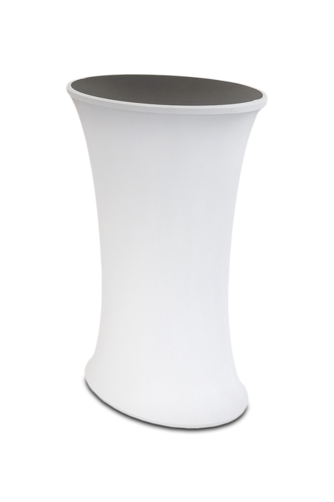 Az ovális textil kínálópult praktikus és elegáns választás kiállításokra, promóciós eseményekre vagy bemutatótermekbe. Modern formája és letisztult megjelenése tökéletesen illeszkedik bármilyen professzionális környezetbe. |