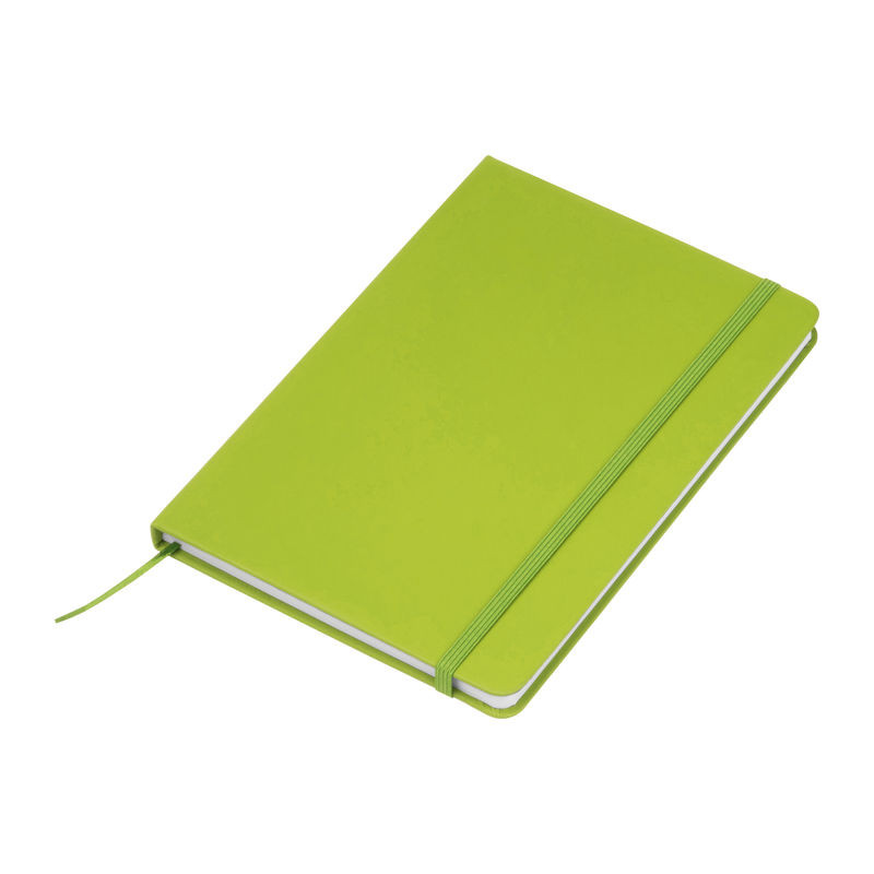 A5 méretű jegyzetfüzet újrahasznosított PU-borítóval és 160 vonalas oldallal, mely újrahasznosított papírból készült.