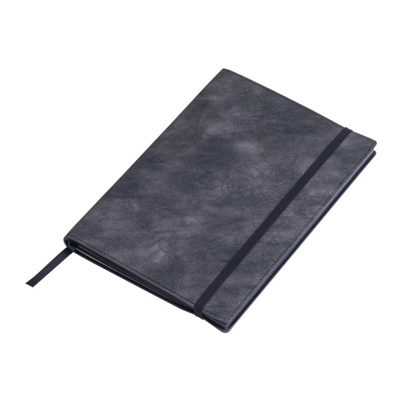 A5 jegyzetfüzet puha PU borítóval, 160 vonalas oldallal (80 lap) újrahasznosított papírból, szalag könyvjelzővel és gumis pánttal.