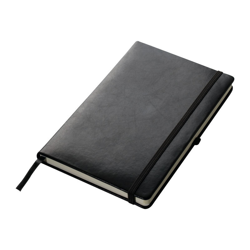 160 vonalas oldalú notesz, A5 méretben, műbőr borítással. Gumipánttal záródik, szalag könyvjelzővel, tolltartó hurokkal melybe a tollát tűzheti.